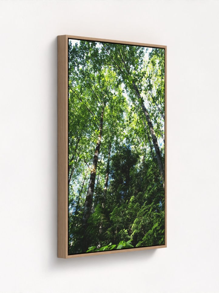 All frames are made of wood in custom made floater frames and are available in a range of sizes and colours.